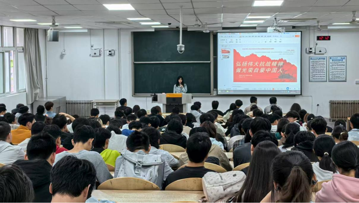会上,全体师生通过一段珍贵的历史影像资料,共同回顾了那段烽火连天的岁月。视频生动展现了中华民族面对外侮时展现出的不屈不挠、英勇无畏的伟大抗战精神,深深震撼了在场的每一位同学。
