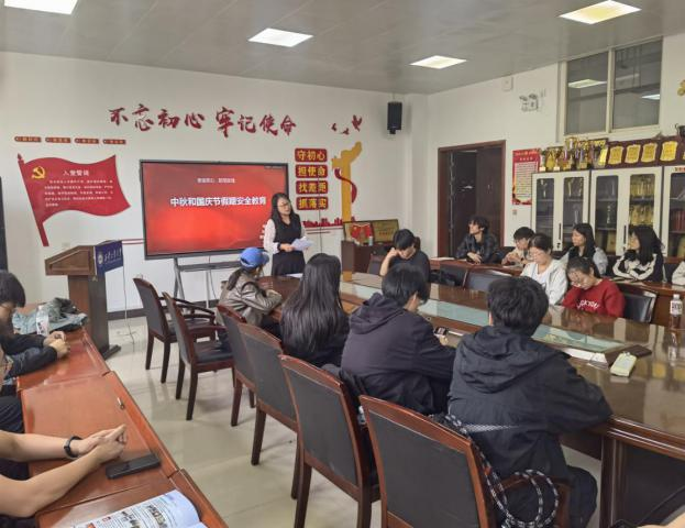 在中秋与国庆双节假期即将到来之际,为确保同学们能够度过一个平安、充实的假期,太阳成集团tyc1286于2025年9月29日在工3-410召开了2022级中秋国庆假期安全教育会。会议由辅导员张瑞红主持,2022级学生参加。
