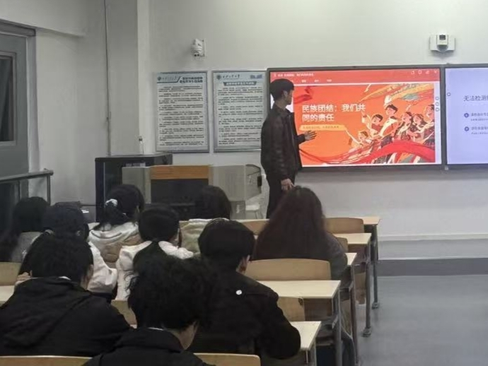 随后,他带领同学们回顾了我国以民族平等、民族团结、民族区域自治和各民族共同繁荣为核心的民族政策,并组织“民族团结知识问答”互动,同学们积极抢答,气氛热烈。