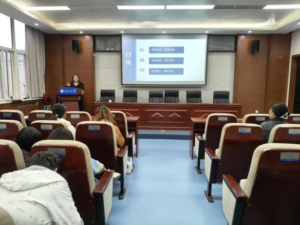 会议伊始,辅导员聚集学生重修课程问题专项督促与指导。她强调,学分达标是顺利毕业、成功就业的基础前提。同时,辅导员鼓励未通过四六级的学生紧抓剩余备考时间,以语言能力证书拓宽求职机会。最后,张老师围绕“面试前的学业复习”展开重点指导。她指出,专业知识是毕业生的核心竞争力,提醒学生结合行业岗位需求,系统梳理核心课程考点,提炼实验实训、课程设计中的实践亮点,形成个性化复习提纲。同时结合企业面试常见专业问答场景,分享了答题逻辑与表达技巧,助力学生将学业积累转化为面试优势。