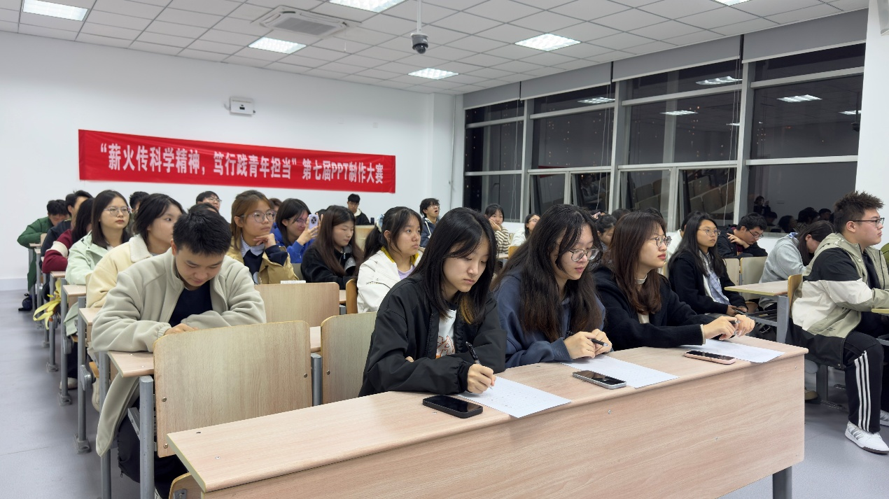 活动筹备期间,学院科协精心统筹规划,完成海报设计宣传、场地布置、设备调试、现场秩序维护等各项工作,为赛事顺利开展筑牢保障。参赛学子踊跃参与、精心创作,提交的作品兼具画面美感与思想深度,既展现了扎实的PPT制作功底,更传递了对科学精神的尊崇与对时代使命的担当,实现了“以赛促学、寓教于赛”的良好效果。