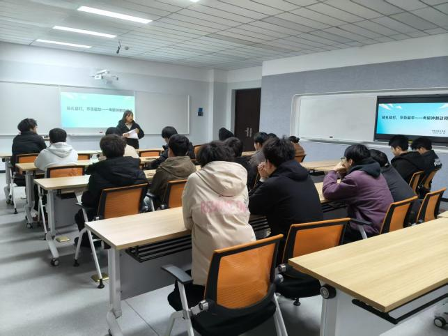 会上,辅导员指出,冲刺阶段产生焦虑情绪实属正常,建议同学们结合自身情况,稳住复习节奏,避免过度内耗。教研室主任郭菲菲聚焦考前关键期,结合学院专业考研特点,强调专业课答题中公式推导的规范要点,同时指导学子做好核心知识点的系统梳理与模块化整合,助力大家在优势科目稳拿高分。她结合往届备考经验,提醒同学们冲刺阶段要保持学习韧劲与稳定节奏,合理分配公共课与专业课的复习时间,尤其重视错题复盘与知识点的串联整合,通过适合自己的方式调节压力。最后,辅导员与教研室主任共同为考研学子答疑解惑,针对大家提出的问题耐心逐一解答。