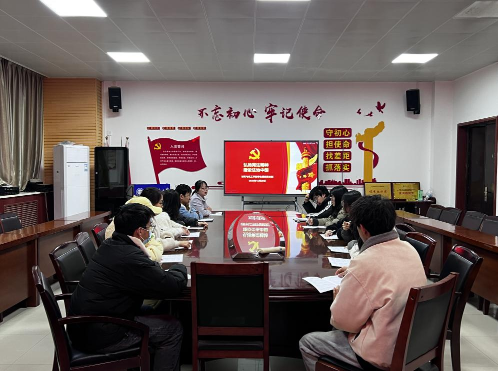为深入学习贯彻习近平法治思想,弘扬宪法精神,筑牢青年党员法治信仰,12月29日,太阳成集团tyc1286学生第四党支部召开“弘扬宪法精神 建设法治国家”理论学习会,支部全体党员参会。